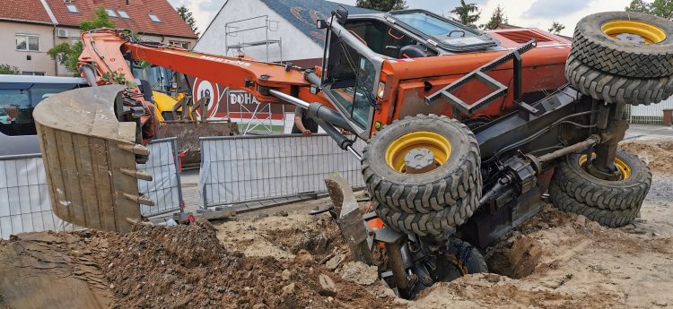 Feldőlt markoló a Korányin - Egy kisbusz megsérült, az utat lezárták