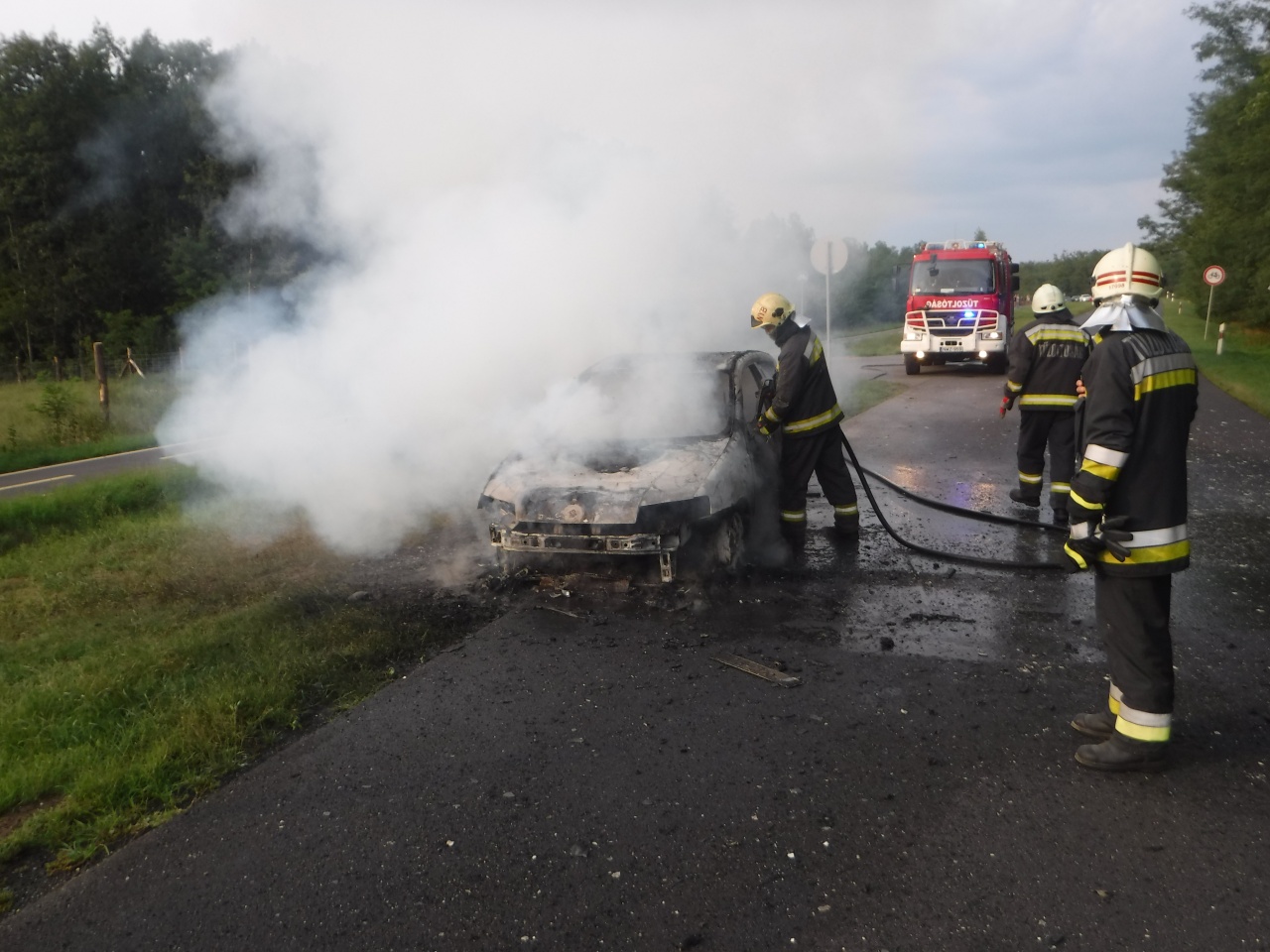 Teljes terjedelmében égett egy benzin üzemű személygépkocsi vasárnap délután a 471-es számú főúton, Nyírbogát és Nyírgelse között.