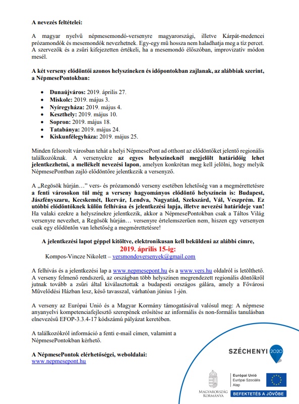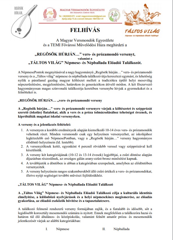 Felhívás vers- és prózamondó versenyre, népmese- és népballada előadói találkozóra