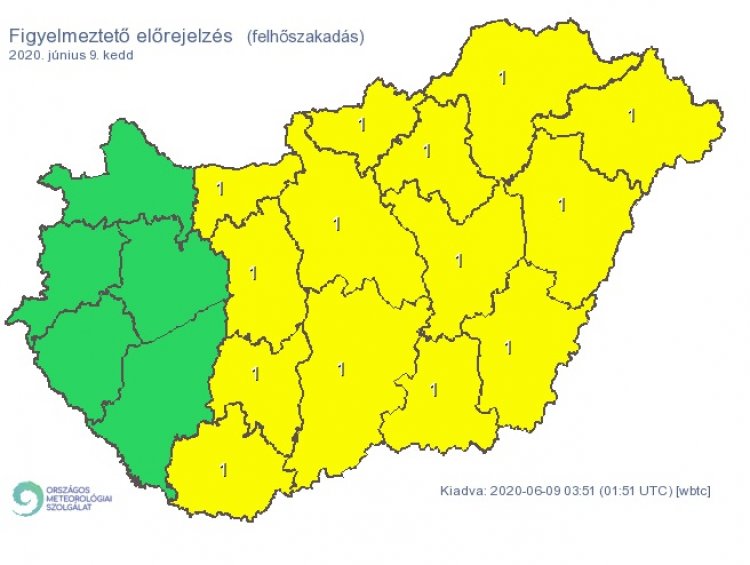 Mindezek miatt elsőfokú figyelmeztetést adott ki Vas és Zala megye kivételével zivatar, Győr-Moson-Sopron, Vas, Veszprém, Zala és Somogy megye kivételéve felhőszakadás veszélye miatt a meteorológia szolgálat.