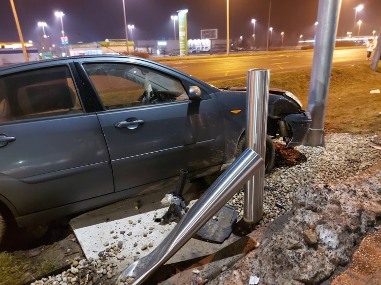 Egy Kosbor utcáról a Pazonyi útra kanyarodó gépkocsi felrohant a kereszteződésben a járdára és a füves területre, majd egy áruház kialakítás alatt lévő autótöltőjét és egy villanyoszlopot is kidöntött.