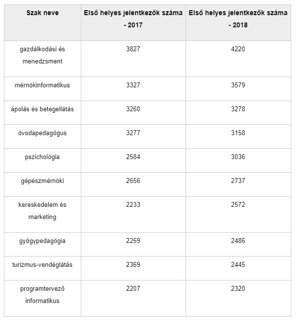 Felvételi 2018 – Ez a tíz legnépszerűbb alapszak az egyetemeken és főiskolákon