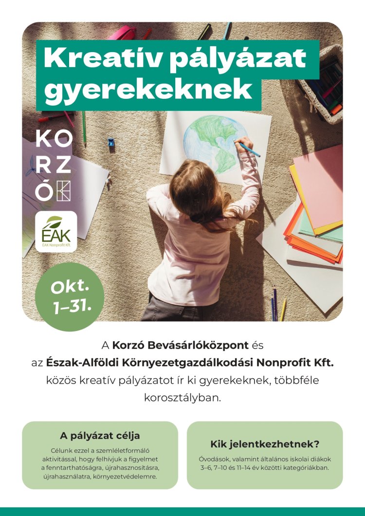 A Korzó Bevásárlóközpont és az ÉAK Nonprofit Kft. közös, kreatív pályázatot ír ki gyerekeknek többféle korosztályban októberben.