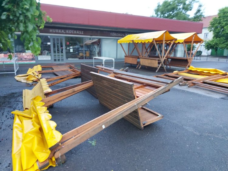 A Búza téren elárusítóasztalokat, a belvárosban virágdézsákat borított fel a viharos erejű szél. Városszerte komoly károkat okozott az ítéletidő.