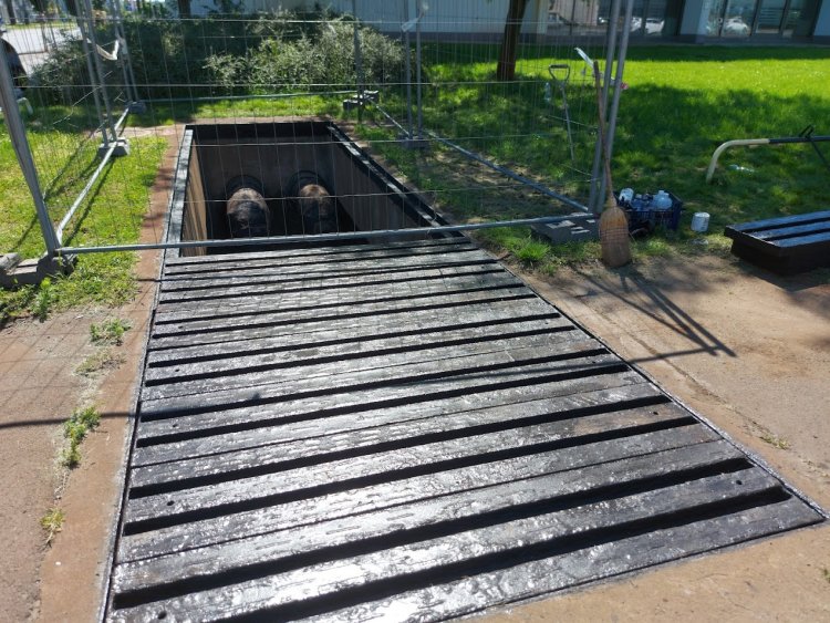 Lefestik az aknafedlapokat, amelyek száradás után visszakerülnek a helyükre.