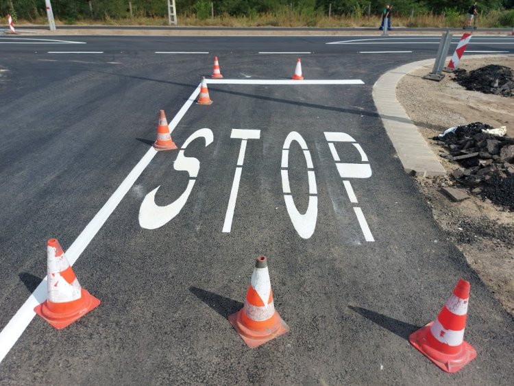 Az útburkolati jeleket festették fel ma a kőlaposi kereszteződésben.