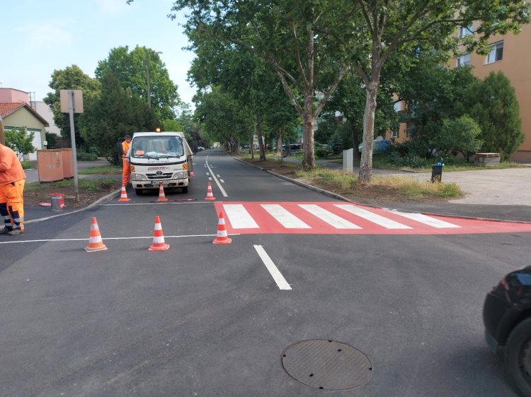 Festik az útburkolati jeleket a megújult Ószőlő utcán