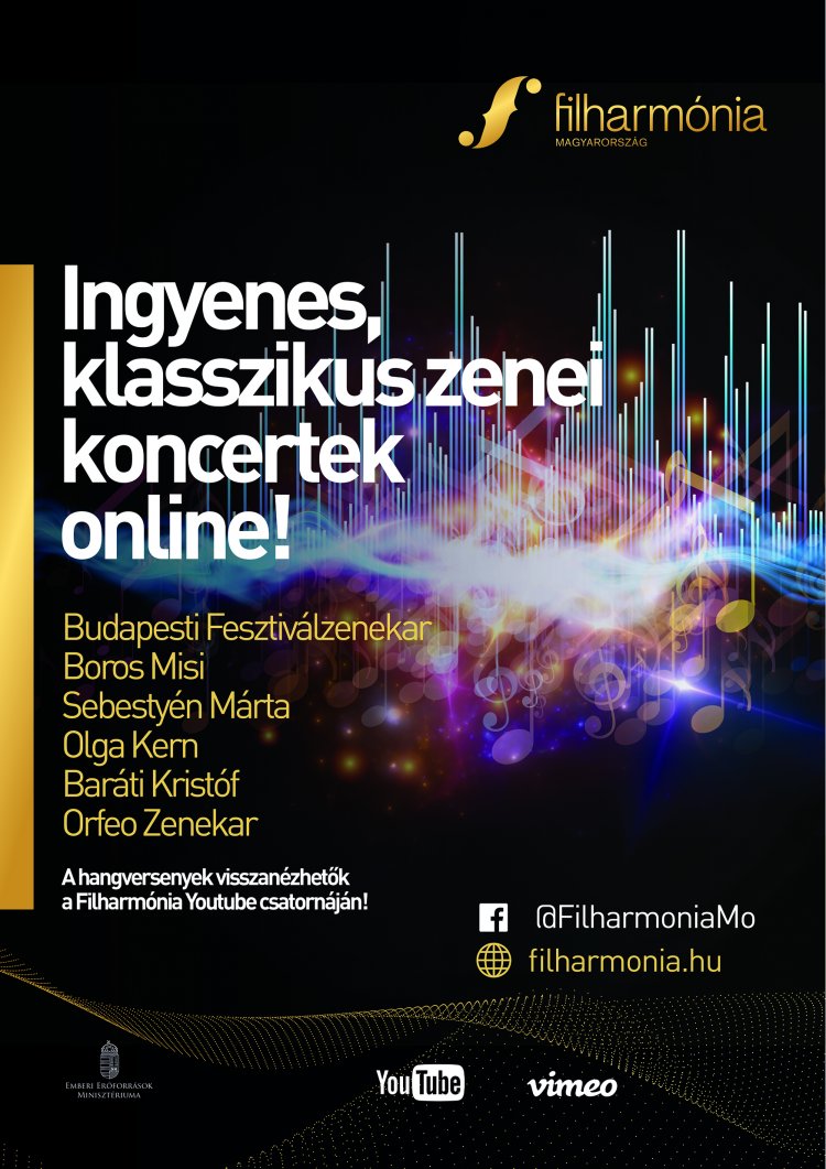 Ingyenes, online koncerteket kínál a komolyzene kedvelőinek a Filharmónia Magyarország. A hangversenyek visszanézhetők a Filharmónia Youtube-csatornáján.
