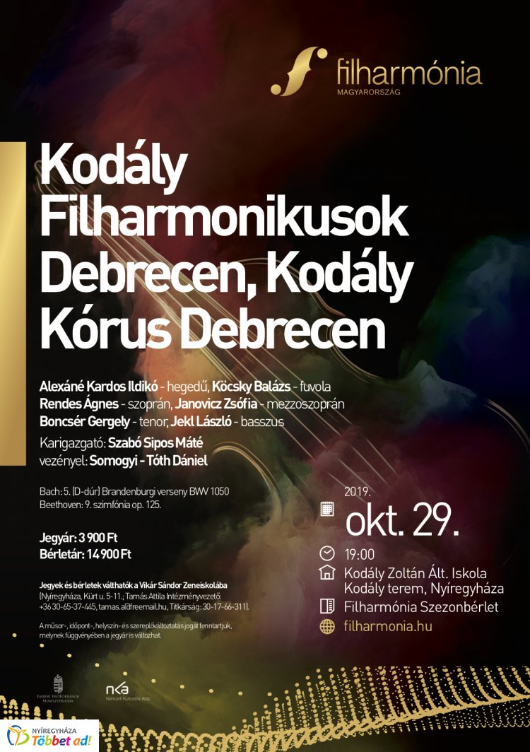 A debreceni Kodály Filharmonikusok október 29-ei koncertjével veszi kezdetét a Filharmónia Magyarország bérletes hangversenysorozata. A 2019-2020-as évadban hangversenyt ad továbbá a Miskolci Szimfonikus Zenekar, a Ránki család, a Szabolcsi Szimfonikus Zenekar és a Nemzeti Filharmonikus Zenekar is.