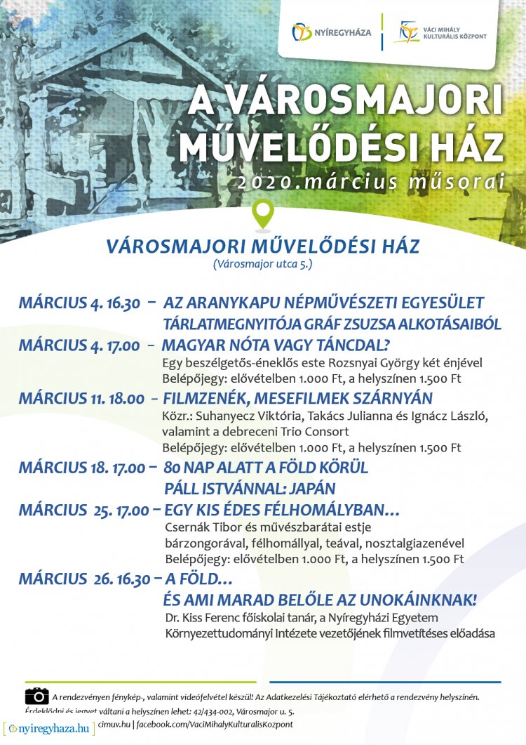 ELMARADÓ RENDEZVÉNYEK - Filmzene, kiállítás, előadás - A Városmajori Művelődési Ház márciusi programkínálata