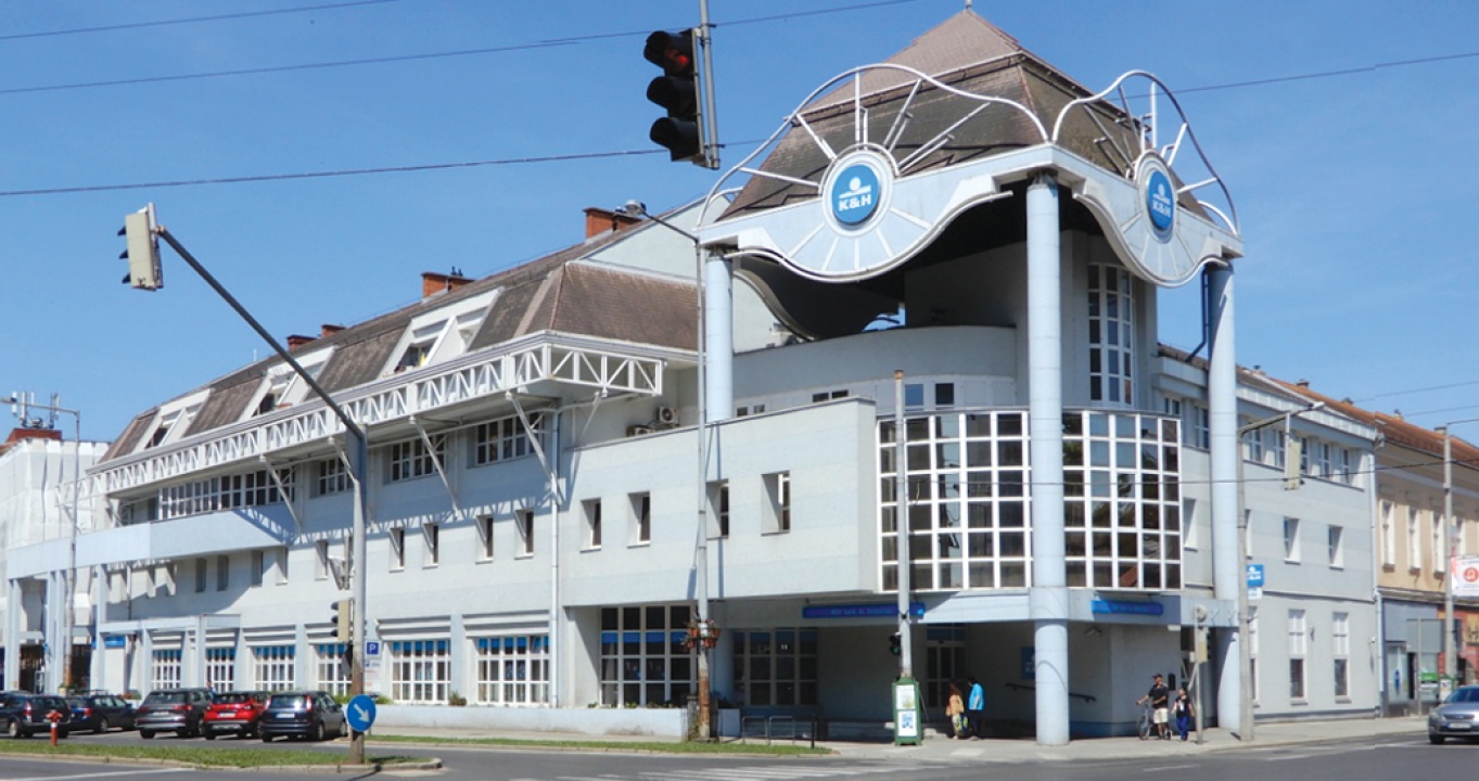 A Kereskedelmi és Hitelbank épülete a Luther utca–Szent István utca sarkán áll. 1986-ban épült. Tervezõje Finta József, hazánk legismertebb építésze, a szakma doyenje. Budapesten õ tervezte a Kempinsky Hotelt, a Bank Centert, a BRFK épületét, szállodák sorát, egyetemi épületeket. Salgótarjánban, Debrecenben, Pozsonyban, Esztergomban is állnak tervei szerint épült házak. Munkásságát mindenféle díjjal ismerte el mindenféle kormányzat és szakmai grémium.