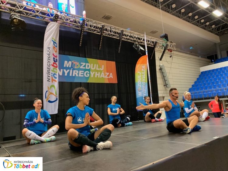 Katus Attila edzése előtt egy GymStick tréningen vehettek részt a nyíregyháziak, majd a sztáredző alaposan megdolgoztatta az izmokat. A végén a Fatum -Nyíregyháza játékosai is beálltak, és együtt nyújtottak a többiekkel.