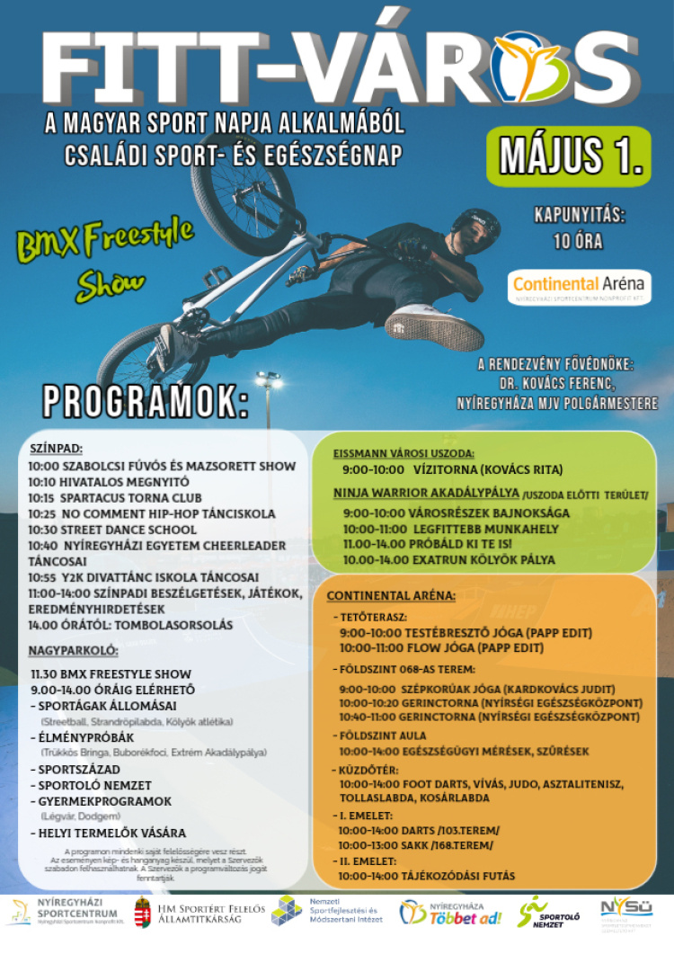 A Magyar Sport Napja alkalmából családi sport- és egészsgnapot szervez Nyíregyháza. Május 1-én 10.00-tól a Continental Arénába minden a sportról szól majd.