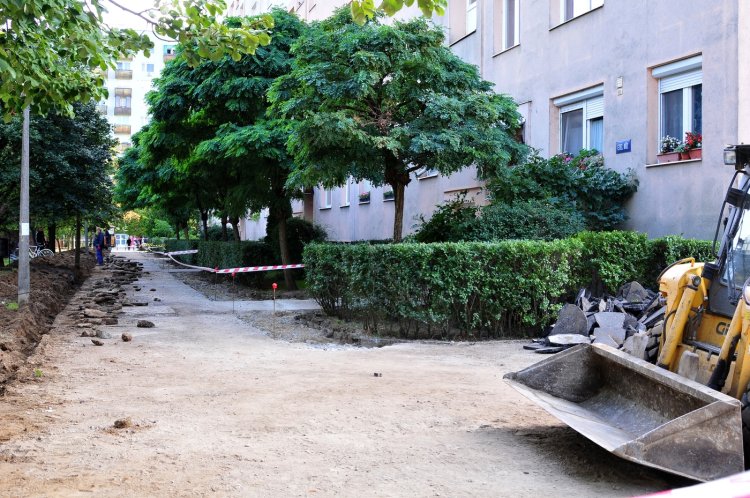 Megkezdődött az Etel köz 14-20. számú társasházak előtti- és a Tas utcai bölcsőde körül lévő járdaszakaszok teljes felújítása összesen 413 méter hosszban.