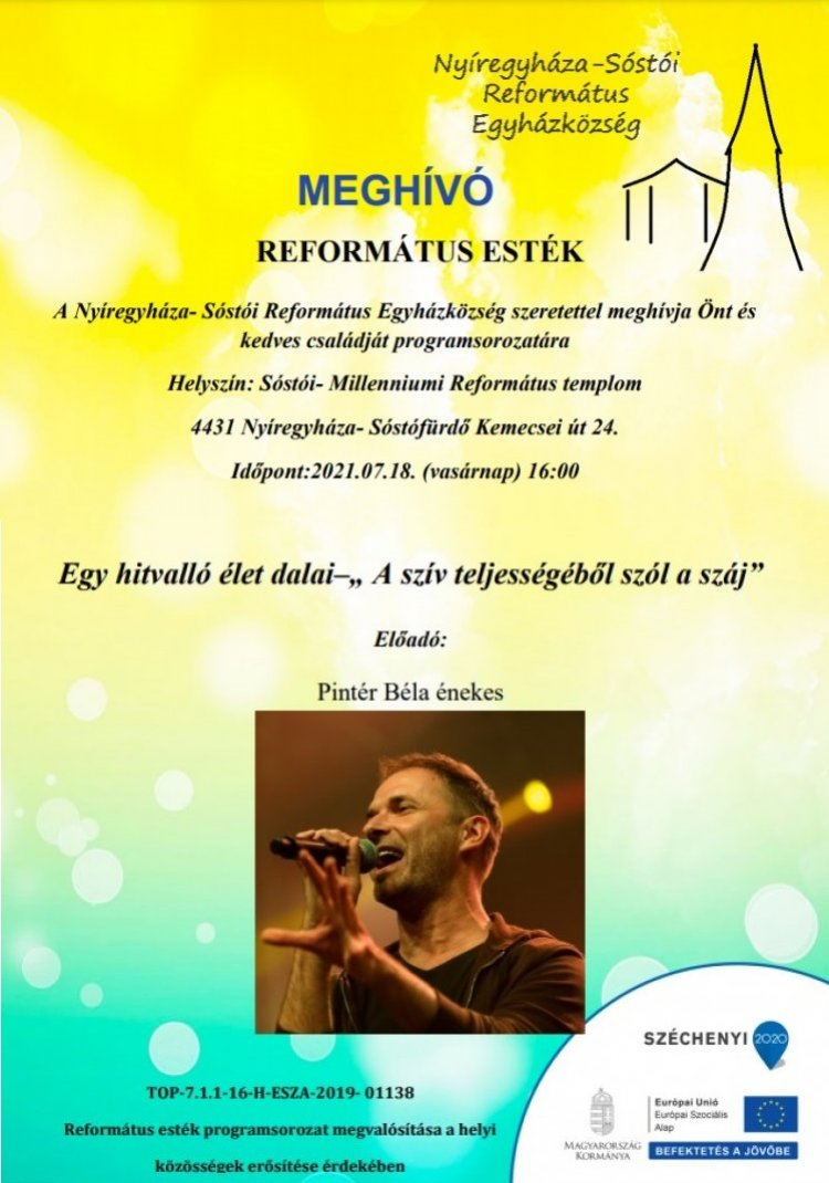 Folytatódik a Református esték programsorozat, a következő vendég Pintér Béla énekes lesz