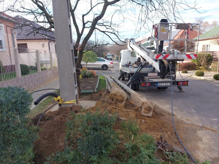 Folytatódnak az erősáramú kábelek, villamosvezetékek és villanyoszlopok cseréje a Tükör utcán, várhatóan szerdáig dolgoznak az utcában.
