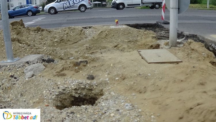 Forgalomkorlátozás a Debreceni úton. A város felé haladva, még a felüljáró előtt a szélső sávot lezárták az átépítési munkálatokkal kapcsolatosan. Nemcsak a gépjármű, hanem a gyalogos és a kerékpáros forgalom is érintett.