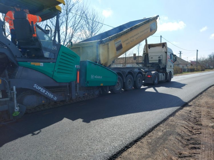 Aszfaltoznak a Magyar Közút szakemberei a Buji úton, 2300 méter hosszban.