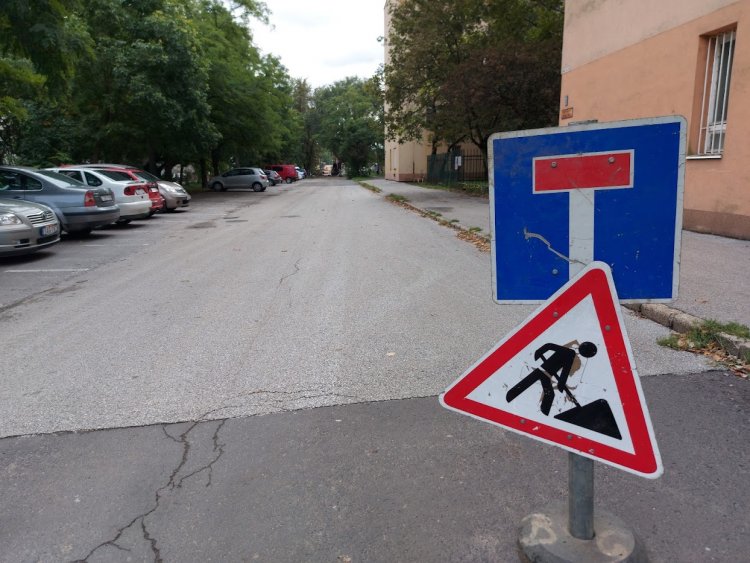 A zsákutca bejáratánál a terelőtáblákat elhelyezték.