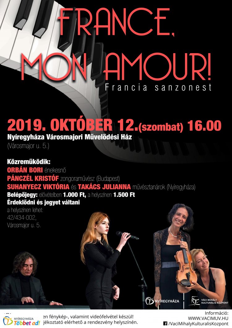Népszerű francia sanzonok csendülnek fel október 12-én Nyíregyházán. Az érdeklődőket a Városmajori Művelődési Házba várják.
