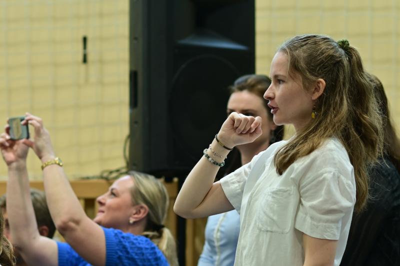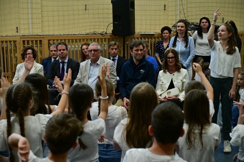 Egy ismert francia slágert énekeltek a nagykövet tiszteletére közösen az apáczaisok. A magas rangú diplomata hallhatott mondókákat, láthatott táncot, és az is kiderült, hogy igazi énekes tehetségek is tanulnak a nyíregyházi iskola falai között.