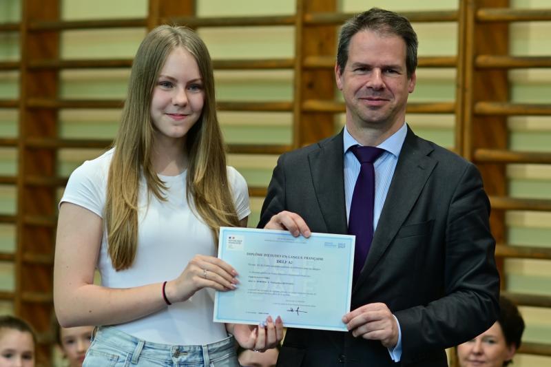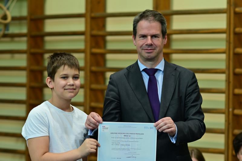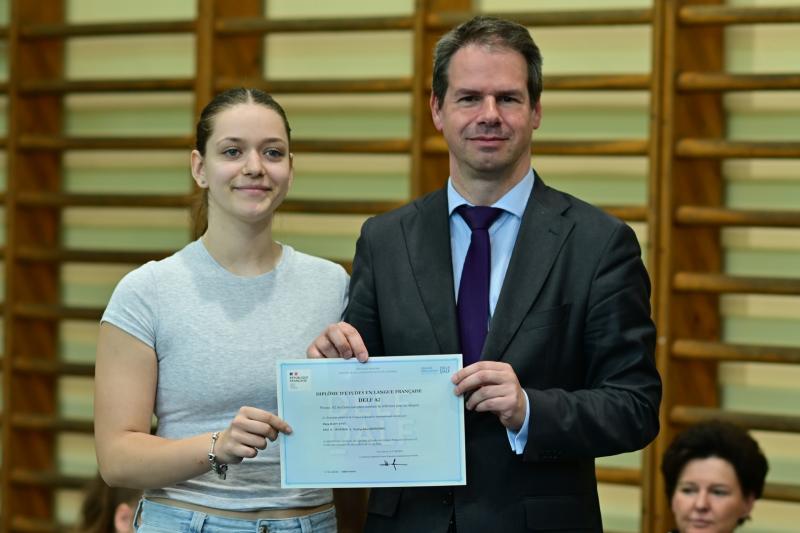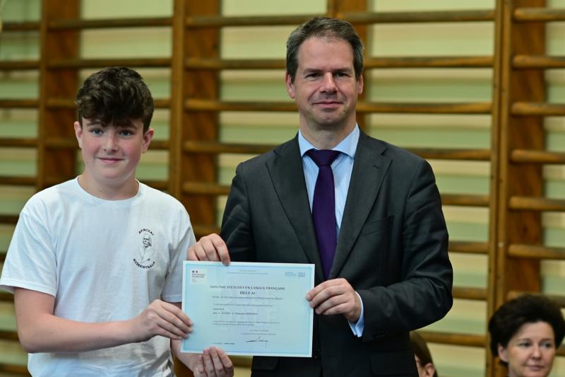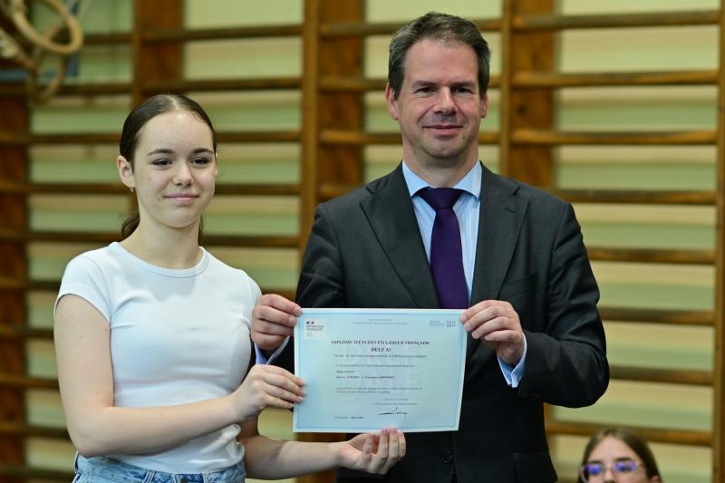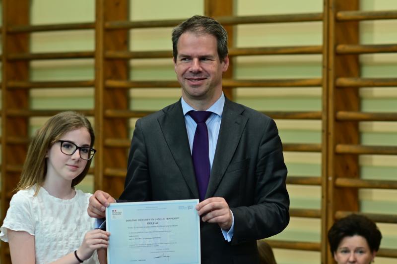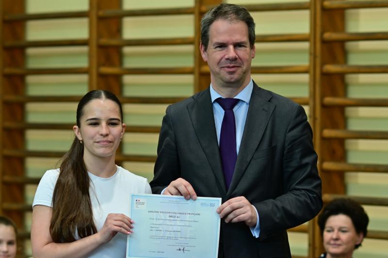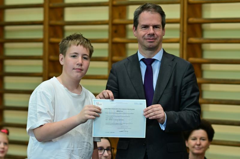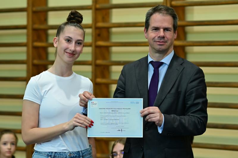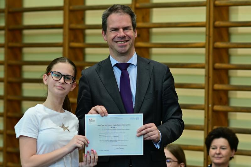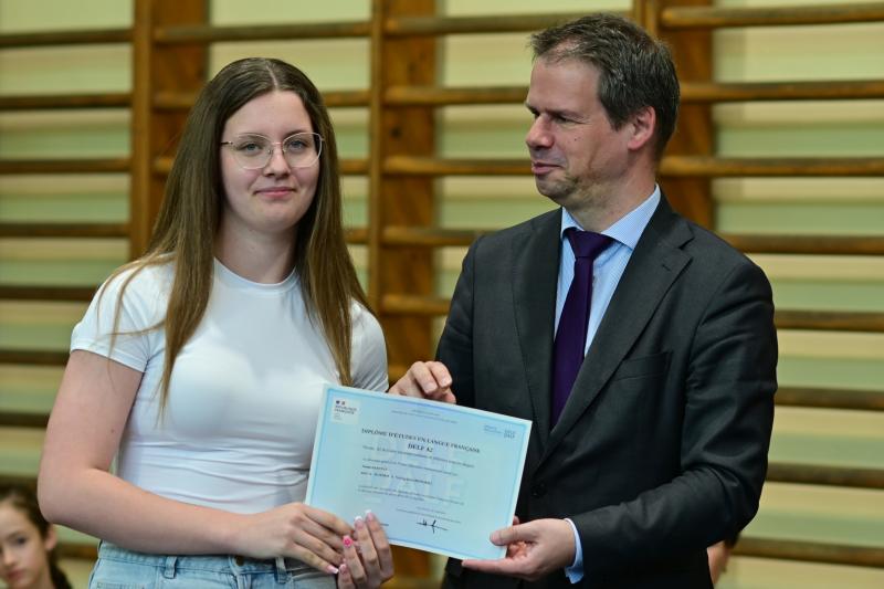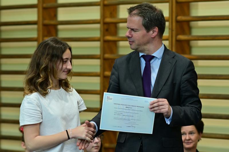 A francia nagykövet tett látogatást az Apáczai Csere János Általános Iskolába. Az intézmény Magyarország egyetlen olyan alapfokú oktatási intézménye, ahol kéttannyelvű francia tagozat található. A nagykövet tiszteletére műsort adtak az iskolai tanulói, természetesen franciául. A diplomata pedig segített átadni azoknak a diákoknak a nyelvvizsgájukat, akik az elmúlt hetekben szerezték meg a dokumentumot.