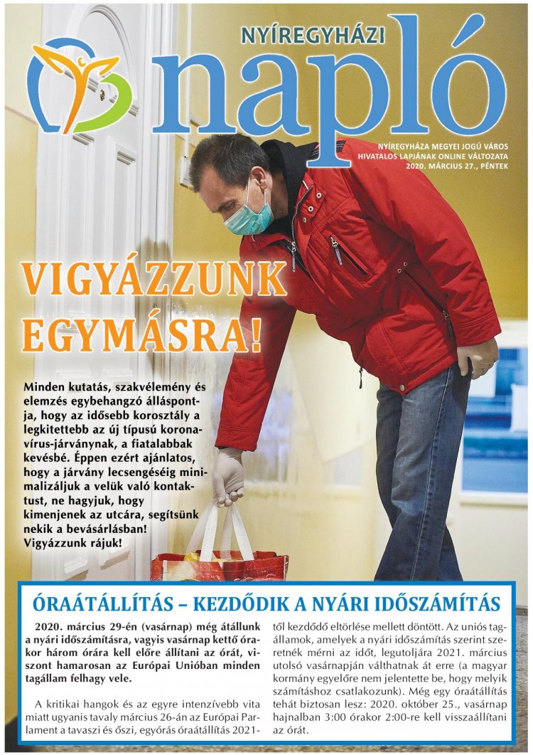 A Nyíregyházi Napló online változatának 2020.03.27-i száma az első oldalra kattintva olvasható tovább!