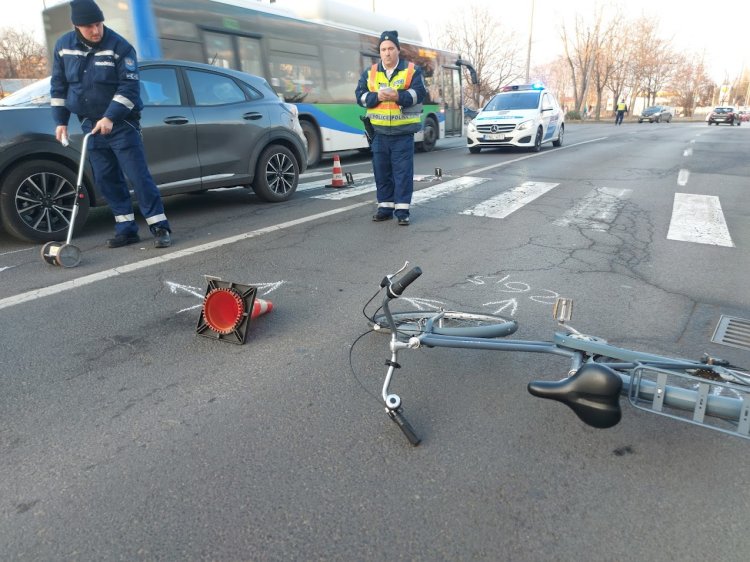 Kerékpárost gázoltak el a Korányi Frigyes utcán, a Krúdy Gyula utcai kereszteződésben szombaton.