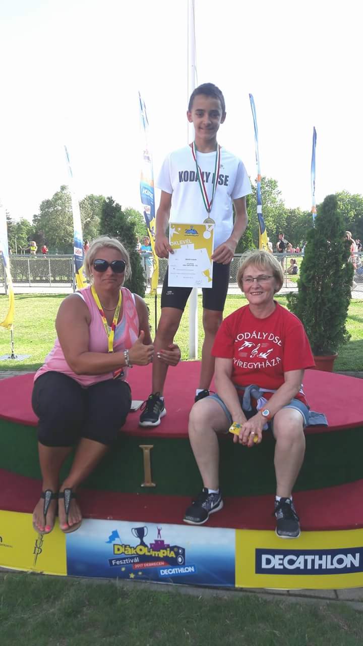 Gödöllőn rendezték a Mezei Futó Diákolimpia országos döntőjét. 21. alkalommal álltak rajthoz az ország tehetséges atlétái. Szabó Hunor, a Kodály Zoltán Általános Iskola tanulója a harmadik korcsoportos fiúk mezőnyében versenyzett, ahol több mint 200 sportoló közül végzett az élen! Egyéni csúccsal szakította át a cél-szalagot, hiszen 8 perc alatt teljesítette a 2500 métert. Hunor felkészítő tanára Kisgáti Istvánné, testnevelő tanára Hajnal Mária.