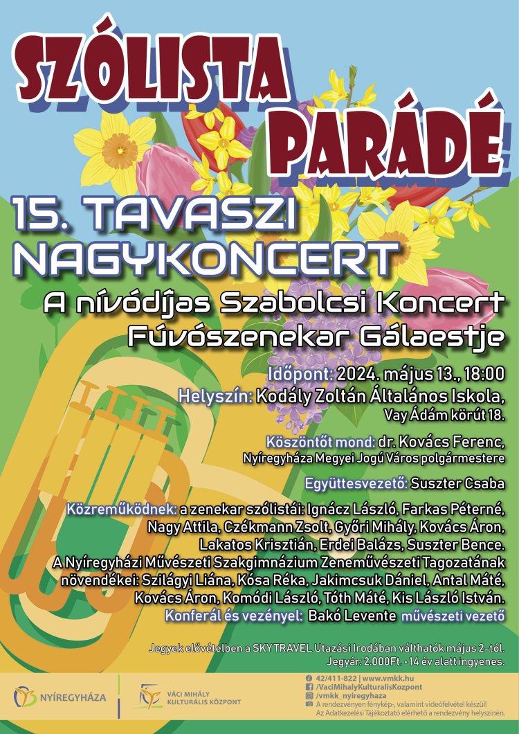15. alkalommal ad tavaszi nagykoncertet a nivódíjas Szabolcsi Koncert Fúvószenekar. Az idei gálaest a „Szólista Parádé” elnevezést kapta.