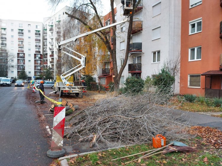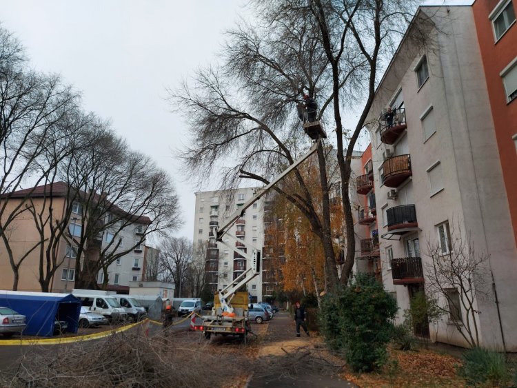 Péntek reggel az Erdő soron megkezdődött a száraz faágak levágása, illetve gallyazása.