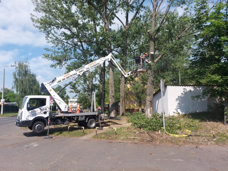 Veszélyes, száraz fákat gallyazott, vágott a NYÍRVV pénteken a Krúdy Gyula utcán.