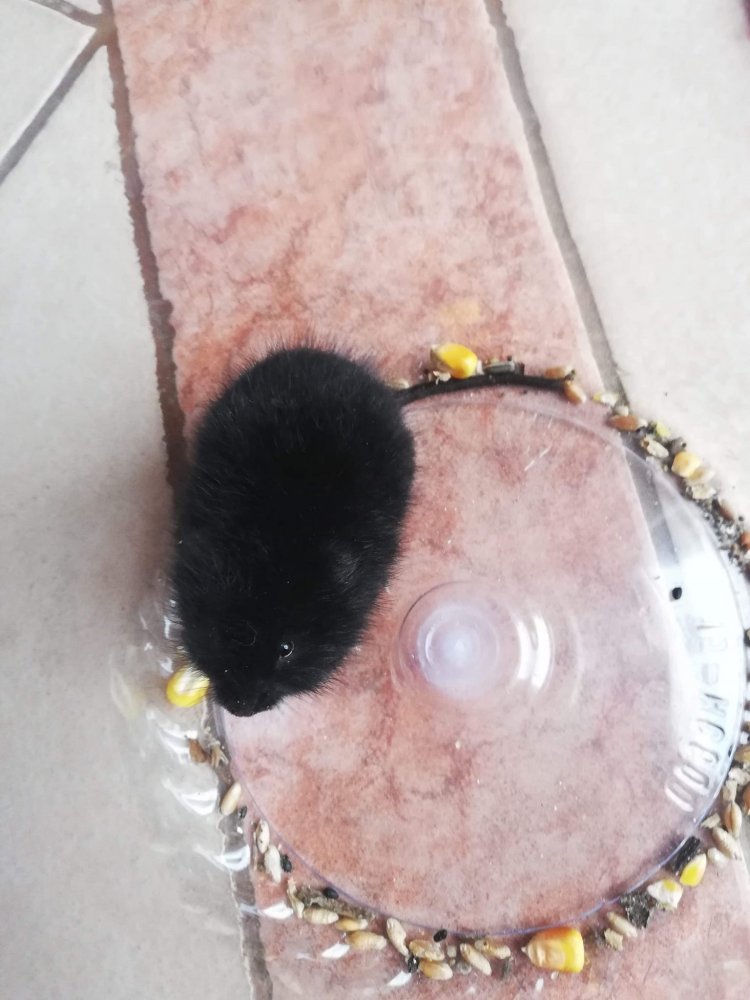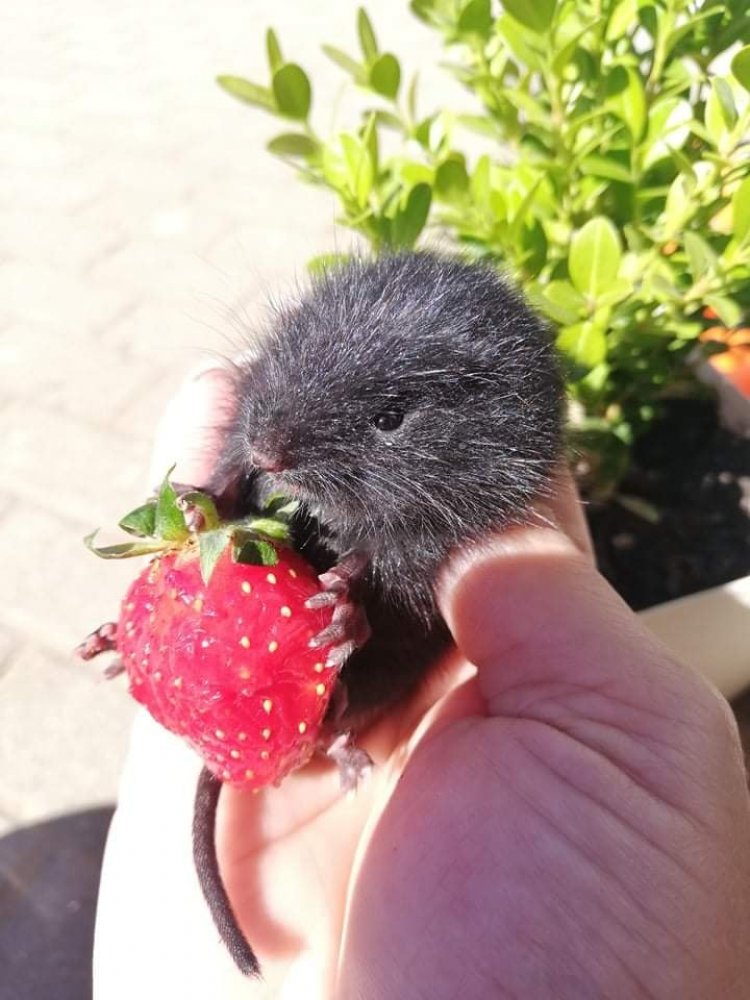-Május 7-én délután találtam a kertünkben, miután a kisfiamat hazahoztam az óvodából- idézte fel az első találkozás pillanatait Brigitta. Jó idő volt, kint tartózkodtunk a szabad levegőn, és egyszer csak azt vettük észre, hogy a zöld fűben szalad egy fekete valami. Utána mentem, de akkor még fogalmam sem volt, hogy mi lehet az. Szerencsére el tudtam kapni, betettem egy átlátszó dobozba, adtam neki magokat, amit egyből a kezébe vett és rágcsálta, majd készítettem róla egy képet és elküldtem a férjemnek.