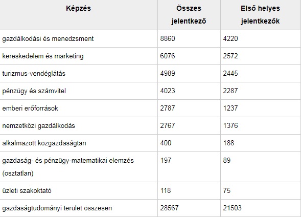 A következő táblázatban megnézhetitek, hányan szeretnének bejutni a gazdasági alap- és osztatlan szakokra.