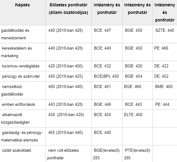 A második legnépszerűbb gazdasági alapszak a kereskedelem és marketing, ezen a szakon is előzetes ponthatárt húztak, idén legalább 428 pontot kell elérni az állami ösztöndíjas helyhez.