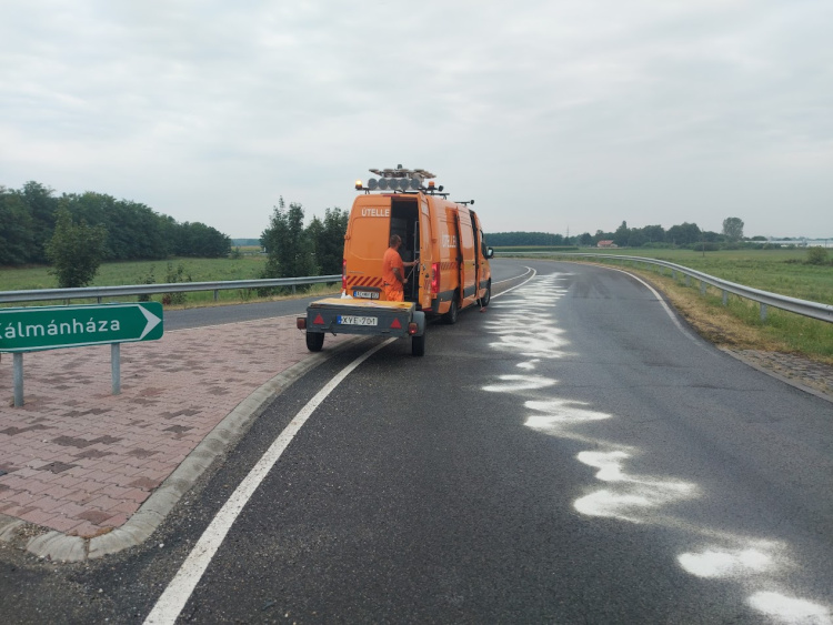 A Magyar Közút Nyíregyházi Üzemmérnöksége közömbösítő anyagot szórt az olajfolyásra, és fényjelzéssel figyelmeztették az autósokat a csúszásveszélyre.