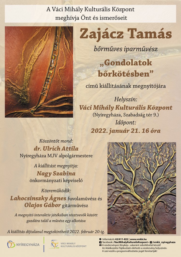 Zajácz Tamás bőrműves iparművész munkáiból nyílik kiállítás január 21-én a Váci Mihály Kulturális Központban. A megnyitó interaktív játékában résztvevők között gazdára talál a művész egy alkotása. A tárlat díjtalanul megtekinthető február 20-ig.