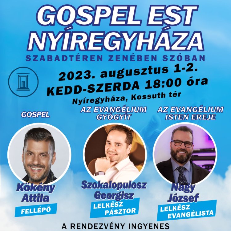 Mindenkit szeretettel várnak a szervezők 2023. augusztus 1-jén és 2-án a Nyíregyháza főterén megrendezendő Gospel estre!