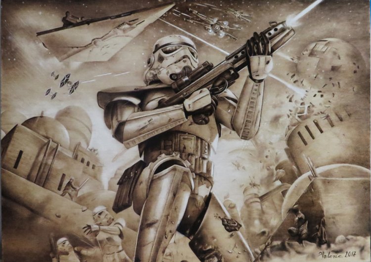 A nyomorultak című, 2012-es filmdrámából Cosette portréja, vagy éppen a Csillagok háborúja egyik birodalmi rohamosztagosának elképesztően élethű mása. Több tucat alkotás dicséri már Huszti Valéria keze munkáját, aki nemcsak filmjeleneteket rajzol le tűzégetéssel, hanem készít portrékat és önarcképet is. Az utóbbi ráadásul 2017-ben az amerikai Jo Schwartz Woodburning Realistic People c. könyvébe is bekerült már.