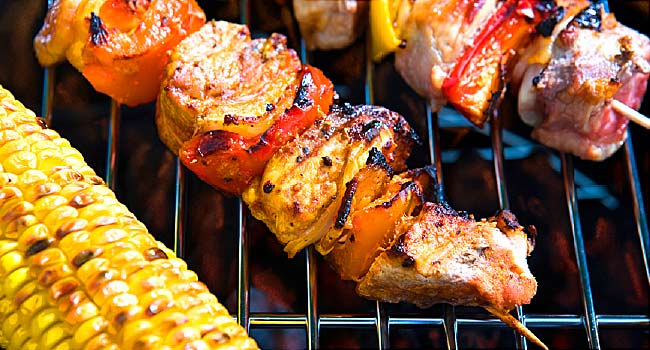 PARÁZS BAGÁZS: Birsalmás savanyúkáposztás grillcsirke, Mangalica szalonnával hagymával nyárson sült chilis lenmagvas csirkecomb, Grillezett zöldséges hurka, Parázs burgonya házi csalamádé, szőlő chutney, racka pincepörkölt