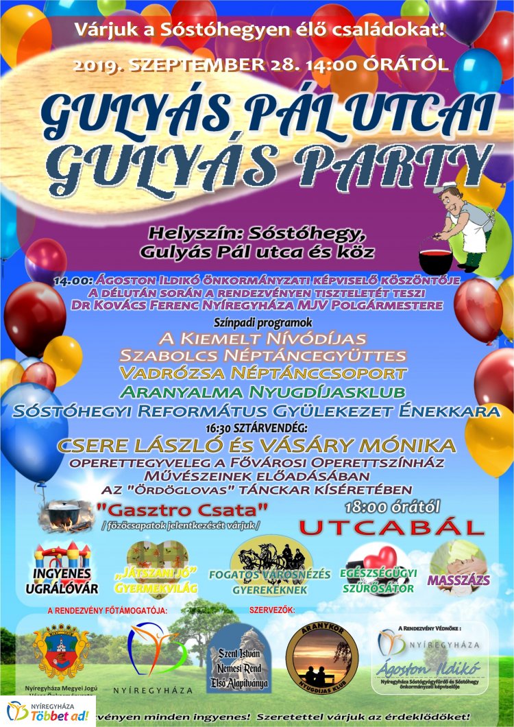 Gulyás Pál utcai gulyás party Sóstóhegyen - sztárvendégekkel, utcabállal