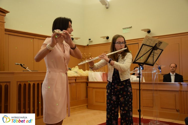 Balogh Zsuzsa, a ZOOM Egyesület képviselője megköszönte a törvényszék és a gyermekek, részt vevő intézmények együttműködését a kezdeményezés megvalósításában, majd Olasz Ágnes művész tanár és Szilvási Júlia Róza tanuló közös fuvolajátéka színesítette a rendezvényt. Az eredményhirdetést követően dr. Vadász Mihály hivatalosan is megnyitotta a gyermekrajzokból álló tárlatot.
