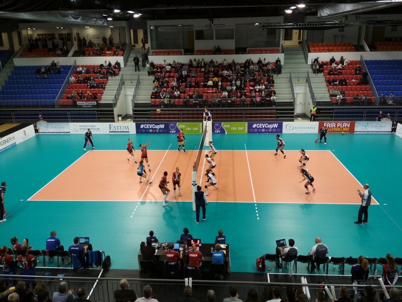 Előnnyel kezdhette a CEV Kupa visszavágóját a Fatum Nyíregyháza, mivel az első találkozót Svájcban nyerte a csapat 3-1-rea Düdingen ellen. A visszavágó első játszmájában 7-7-ig fej-fej mellett haladtak a csapatok, majd jó blokkjaival három pontos előnyt szerzett a Fatum. Használt az időkérés a vendégeknél, mert 12-12-nél ismét döntetlen volt az állás. Dani Brisebois egymás után két ászt nyitott, így a hazai gárda ismét meglépett, majd White és Medic pontjai után 20-14-et mutatott az eredményjelző. Végül a második játszmalabdát értékesítve nyerte a játszmát a Nyíregyháza.