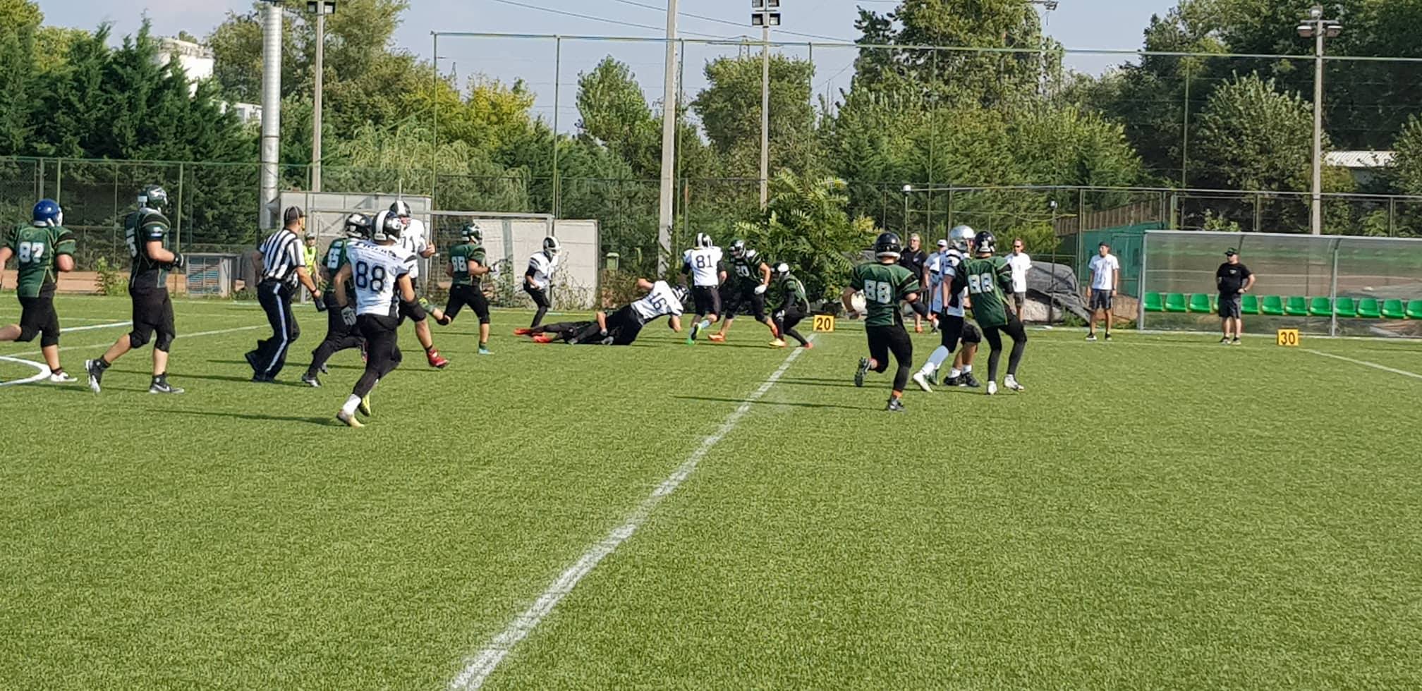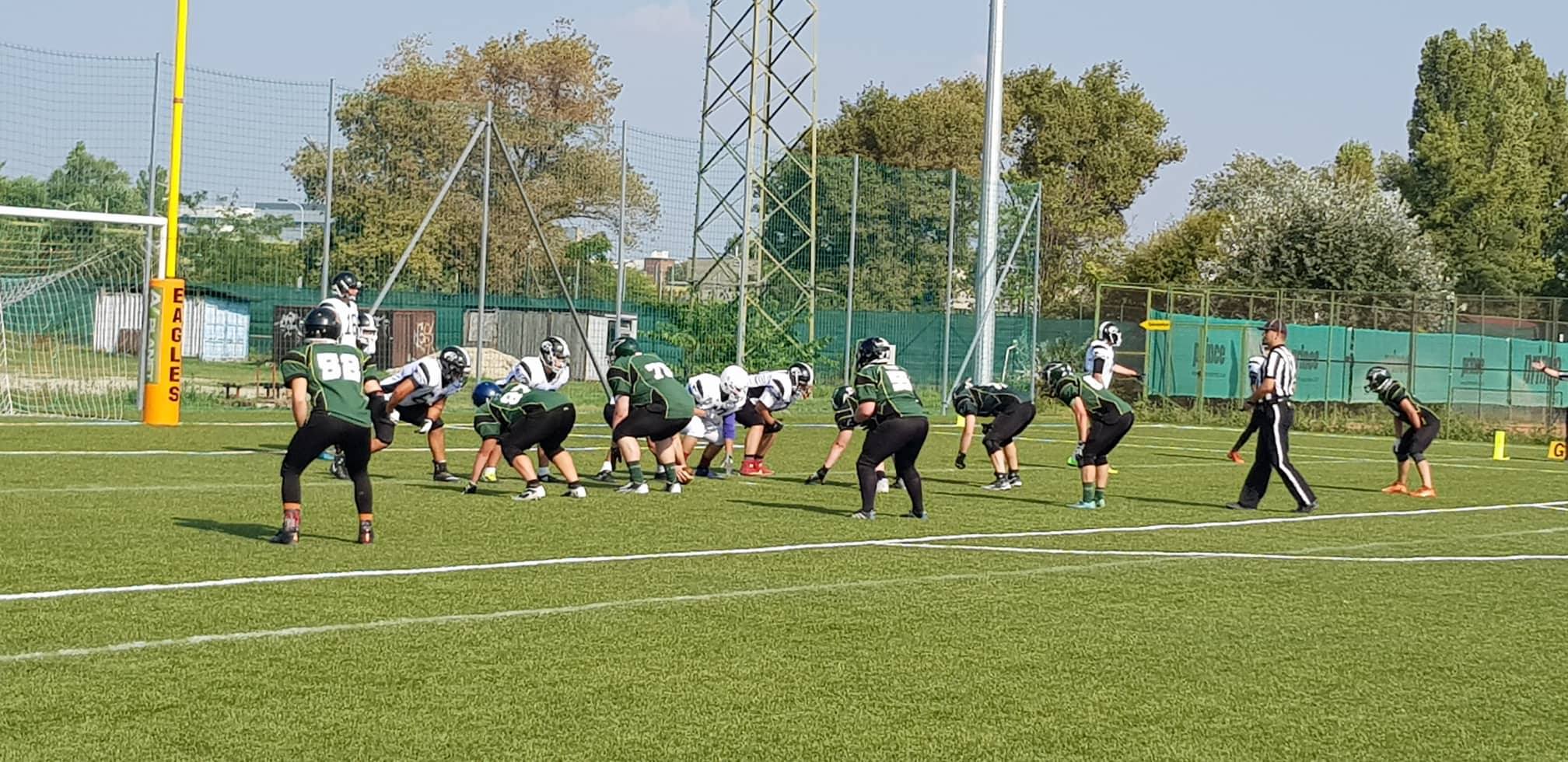 Új idény, új remények, nagyratörő célok. Így indultak neki a szezonnak a 19 éven aluliak megmérettetésében a szabolcsi ifjoncok. Az első találkozón a Sasok vendégei voltak. A kezdeti nehézségek – mint sok idénynyitón – most is megvoltak. A támadósor még egy kicsit görcsösen játszott, de a védelem féken tartotta az Eagles offensét, amíg beindult a pontgyártás. Az első félidő végén a Nyíregyháza szerzett először pontokat. A Sasok centere túldobta az irányítót, így a labda az end zone-ba pattogott. Ott pedig a hazaiak adogatója nem tudott mást tenni, mint ráfeküdni a malacbőrre: safety, 0-2! Ezzel a részeredménnyel mehettek a csapatok a szünetre.