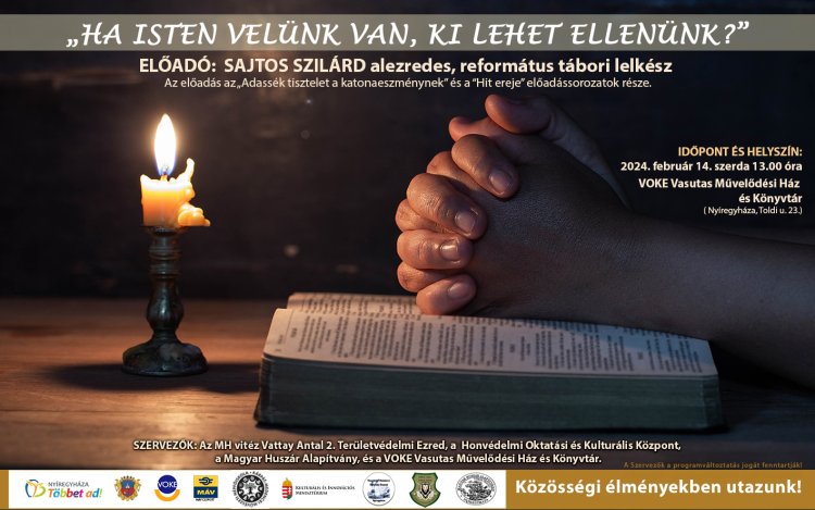 Sajtos Szilárd, református tábori lelkész tart előadást a VOKE Vasutas Művelődési Házban és Könyvtárban.