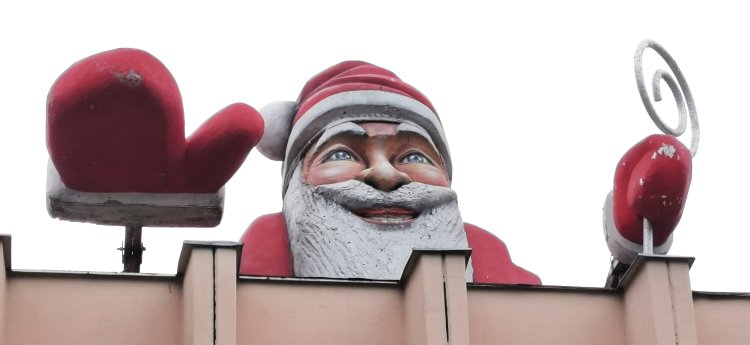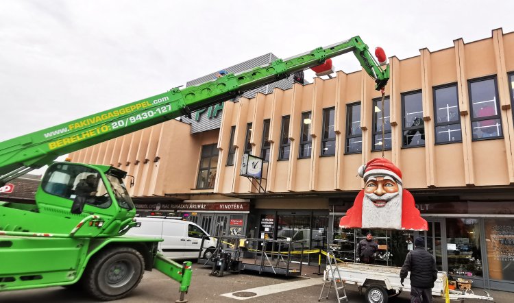 Ismét integet a Mikulás a Búza téri Piaccsarnok tetején.