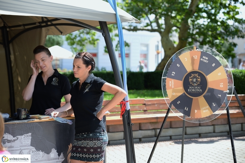 Egy hajdú katonának öltözött fiatal férfi sétált és szórólapozott csütörtök délelőtt a Kossuth téren. A nyíregyháziakat invitálta Hajdúnánás standjához. A város hetek óta tartó roadshow keretében mutatkozik be több magyar nagyvárosban – így a szabolcsi megyeszékhelyre is elhozták többek között a Nánási Portéka termékeit. A kakukkfüves szörp mellett sokan a kínált mangalica kolbászt is megkóstolták, a hajdúnánási gyógyfürdő munkatársa pedig frissítő masszázst adott a nyíregyháziaknak. A nánási roadshow-ra egy szerencsekereket is hoztak: többek között a Hajdúk Világtalálkozójára lehetett belépőjegyet nyerni. A rendezvény augusztus 4-én kezdődik, számos kulturális program és koncert várja majd a kicsiket és nagyokat.