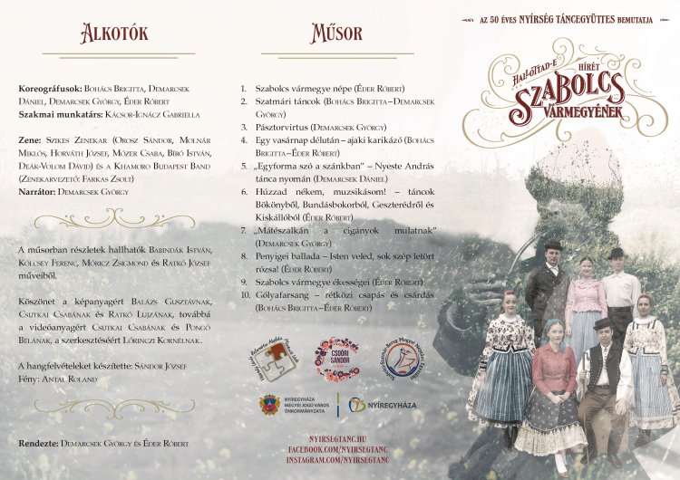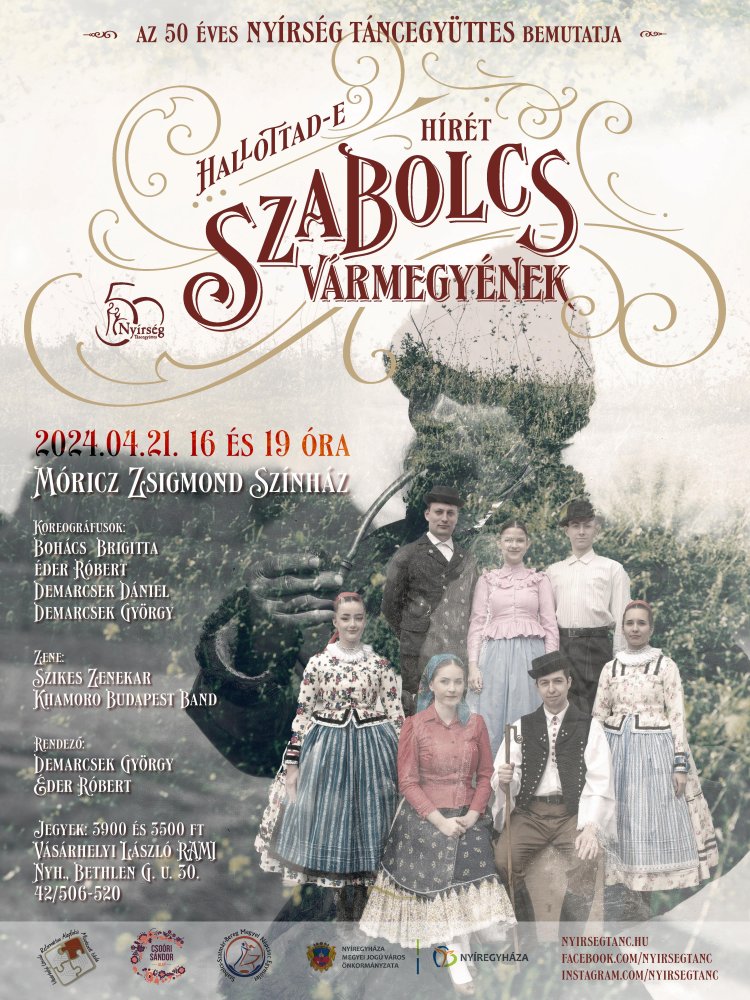 Az idén 50 éves Nyírség Táncegyüttes tisztelettel hívja az érdeklődőket a társulat legújabb bemutatójára, melynek címe: Hallottad-e hírét Szabolcs vármegyének?