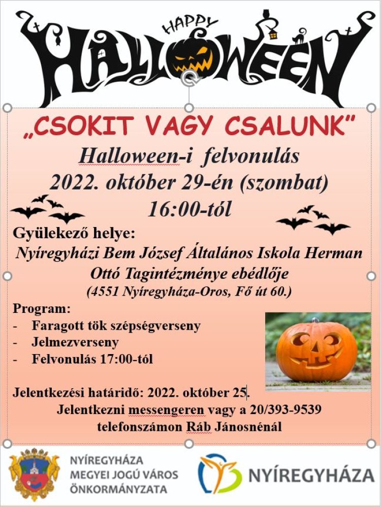 Faragott tök szépségverseny, jelmezverseny és felvonulás is szerepel az október 29-re tervezett programok között melyeknek a Bem József Általános Iskola Herman Ottó Tagintézménye ad otthont és az Orosi Színtér szervezésében valósulnak majd meg.
