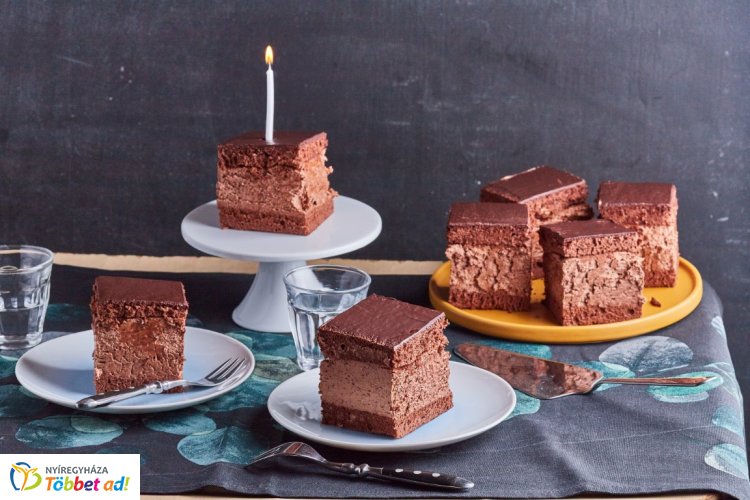Folyamatos keverés mellett belecsurgatjuk az olvasztott étcsokit és a zselatint is a tejszínhabba. A krémet az egyik piskótalapra halmozzuk, elsimítjuk a széleit, rárakjuk a másik piskótalapot és újra, szépen eldolgozzuk a széleket. Pár órára a hűtőbe rakjuk a sütit, majd megkenjük a tetejét vízgőz fölött felolvasztott csokival. Mikor a csoki megdermedt,, forró vízbe mártott éles késsel szeletelhetjük is.